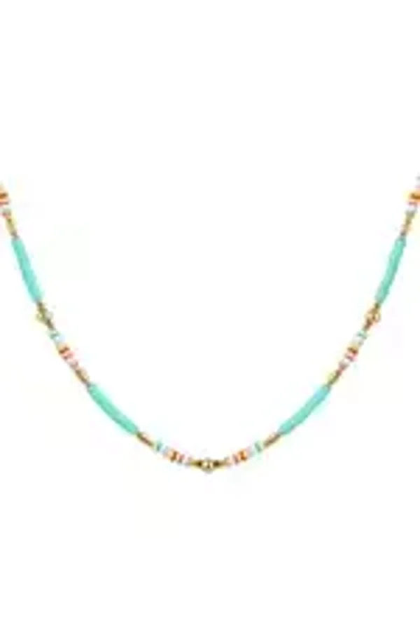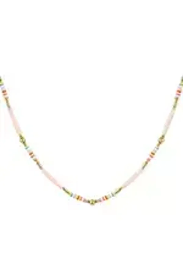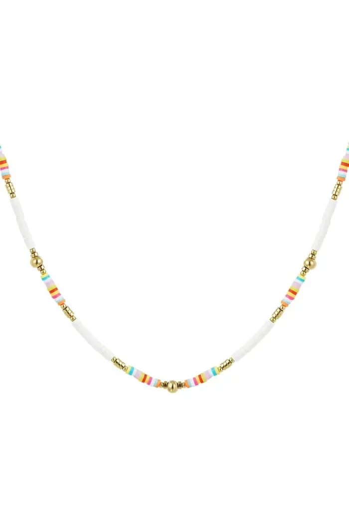 Van deze prachtige kleurrijke ketting wordt je toch meteen vrolijk! Deze multi kleur ketting met wit en goud is perfect te combineren met meerdere gouden kettinkjes voor een toffe necklace party! Deze ketting is gemaakt van Stainless Steel, hematiet en polymeerklei. Verkrijgbaar in de kleuren: blauw - groen - roze - lila - wit. De ketting is verstelbaar vanaf 38 t/m 43 cm.