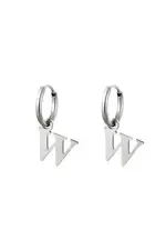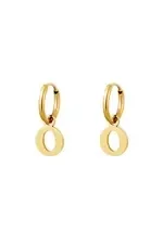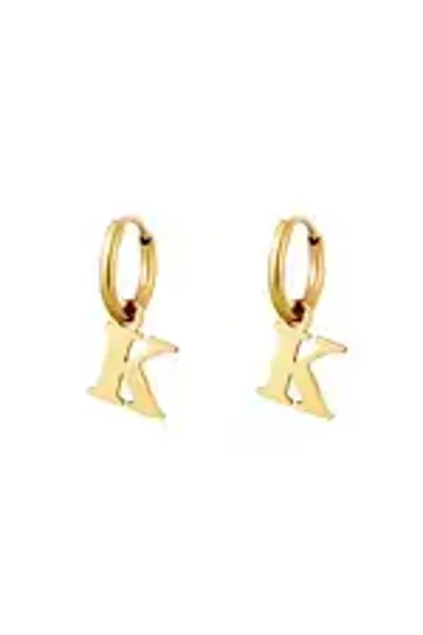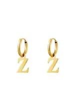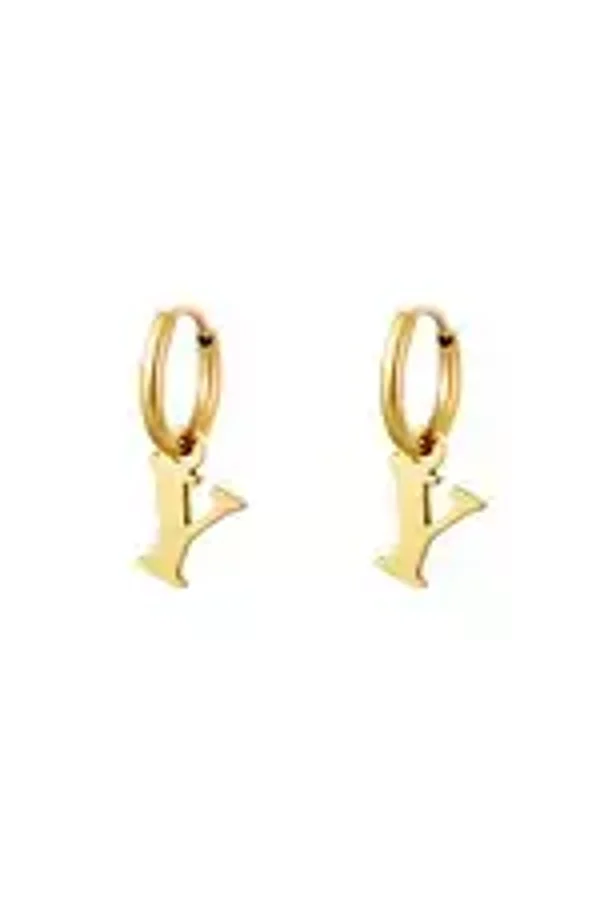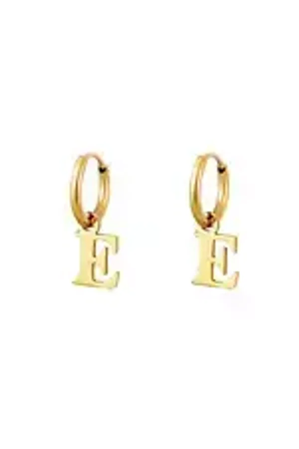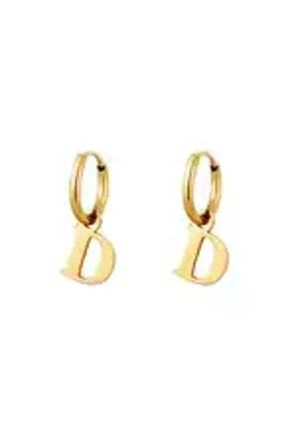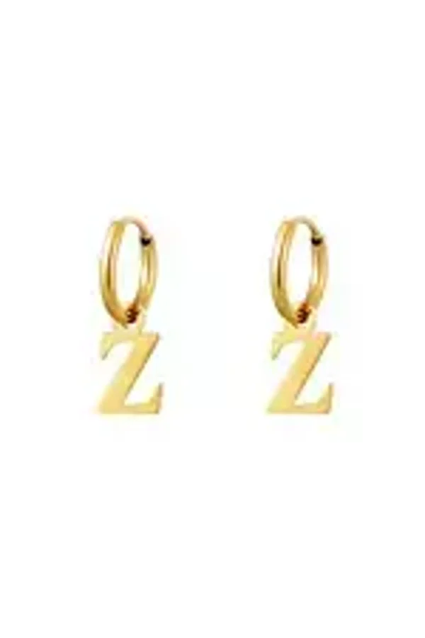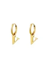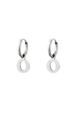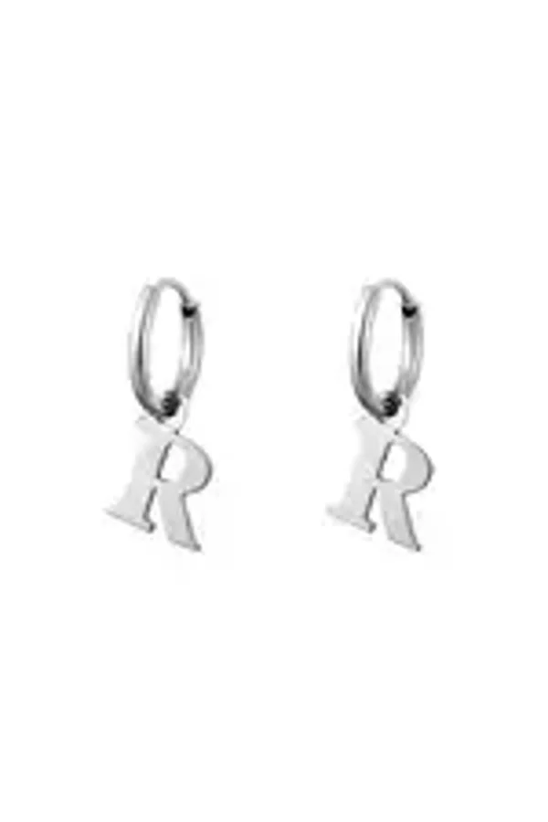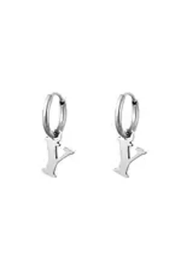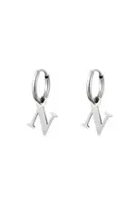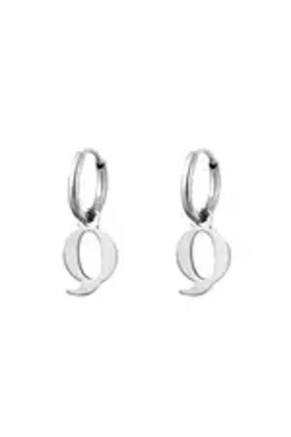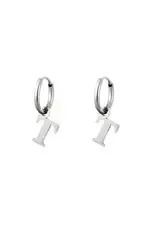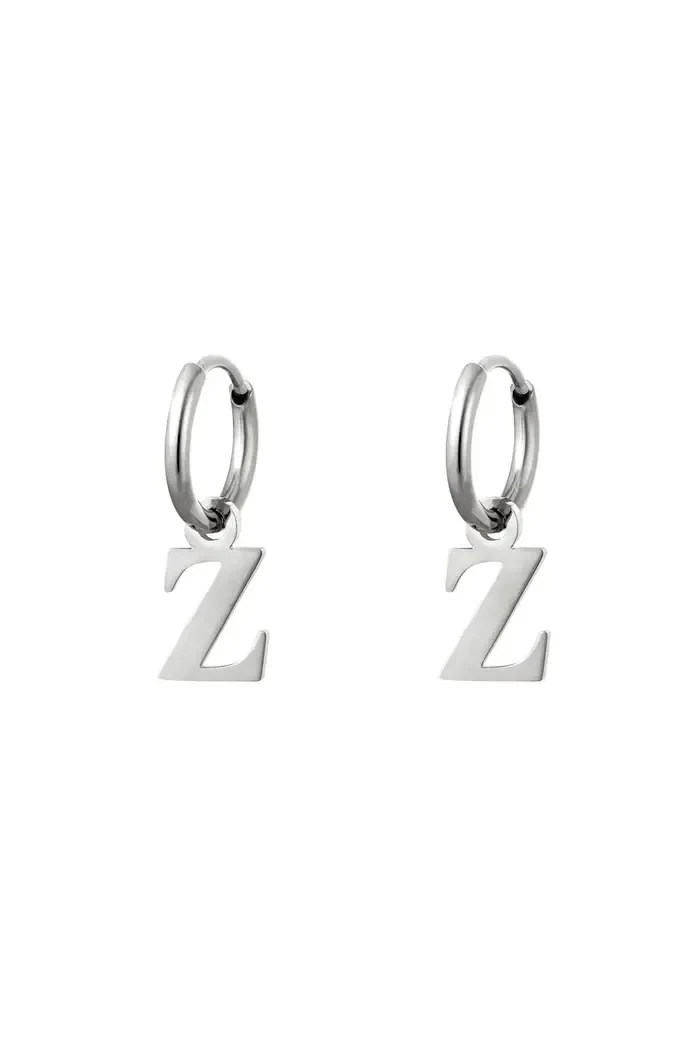 Een paar roestvrijstalen oorbellen met een initiële bedel. Verkrijgbaar in alle letters van het alfabet.