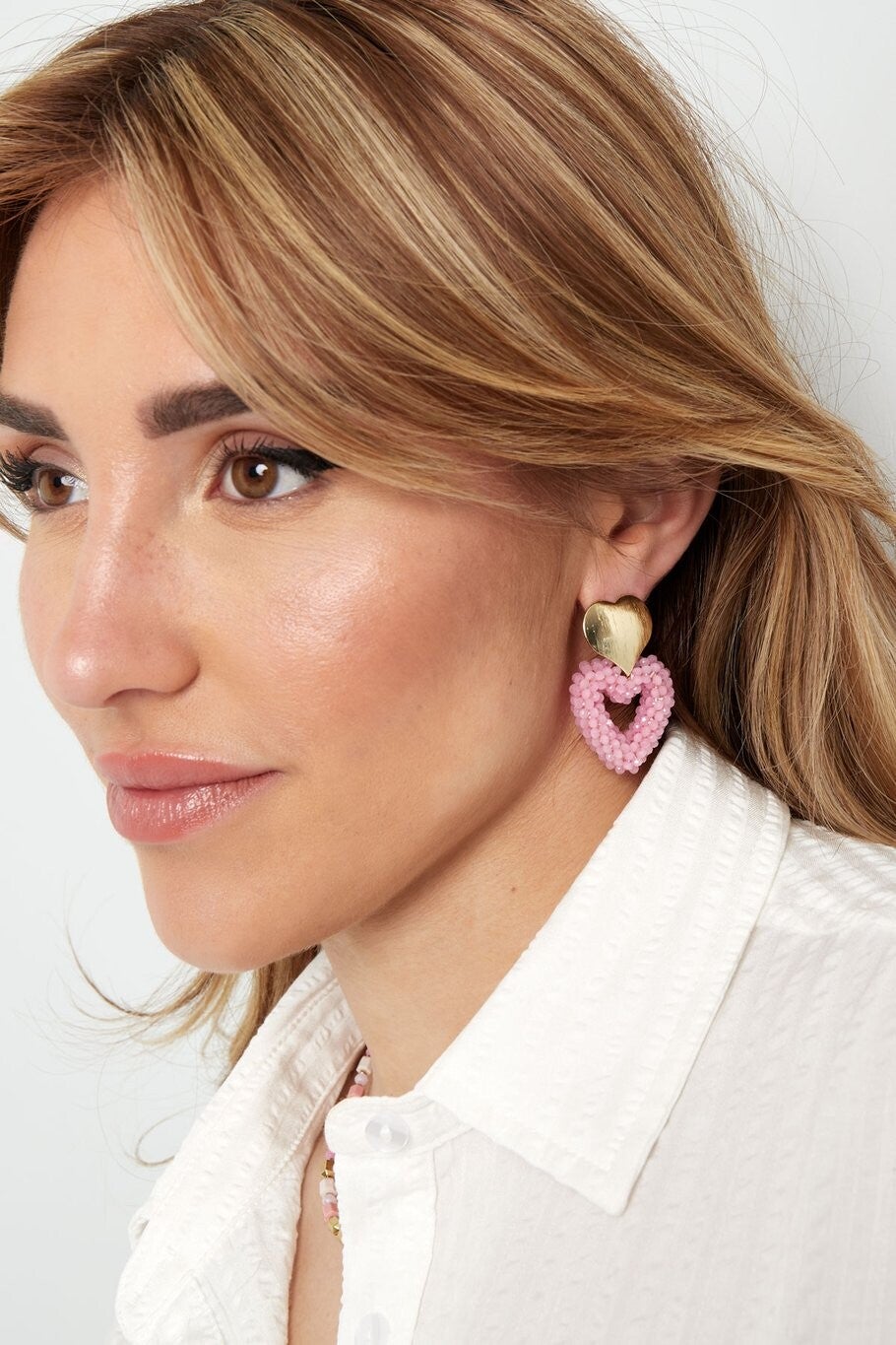 Ben jij op zoek naar trendy hartjes oorbellen? Dan zijn deze oorbellen iets voor jou! De oorbellen zijn gemaakt van metaal en kristal. De afmeting van de oorbellen is 2.7 bij 4.5 centimeter.