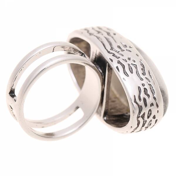 Statement ring met marmere steen in de kleur zilver met creme/gijze marmeren steen.